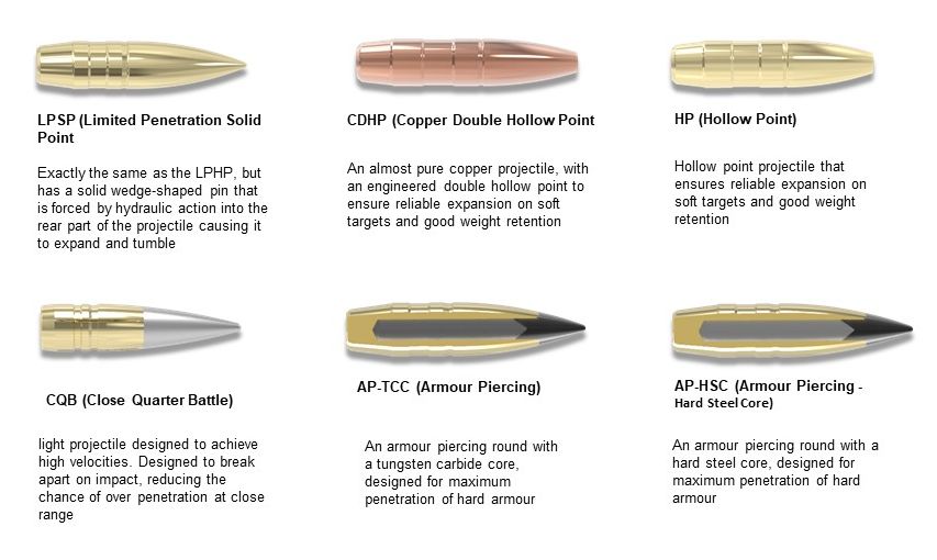 Exemplos de projeteis desenvolvidos pela EPG (reprodução/EPG)